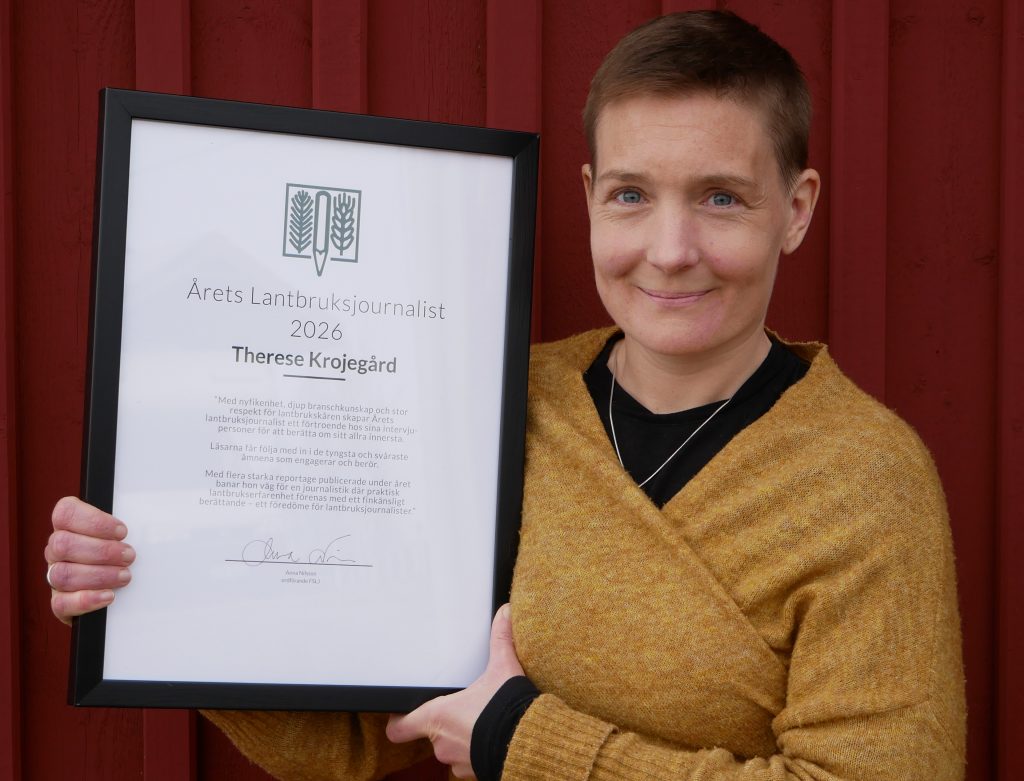Frilansjournalisten Therese Krojegård är Årets Lantbruksjournalist 2026. Hon prisas för sina gripande reportage om lantbrukare med fokus på social hållbarhet.